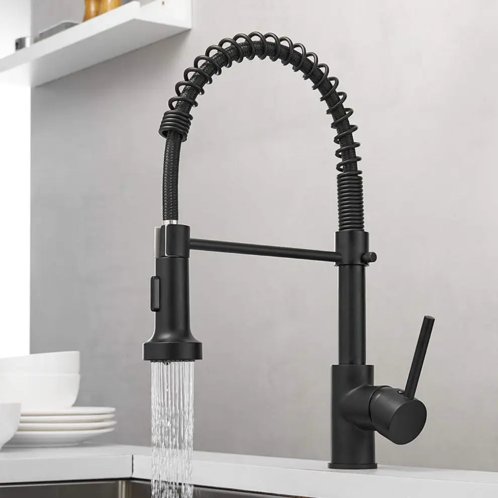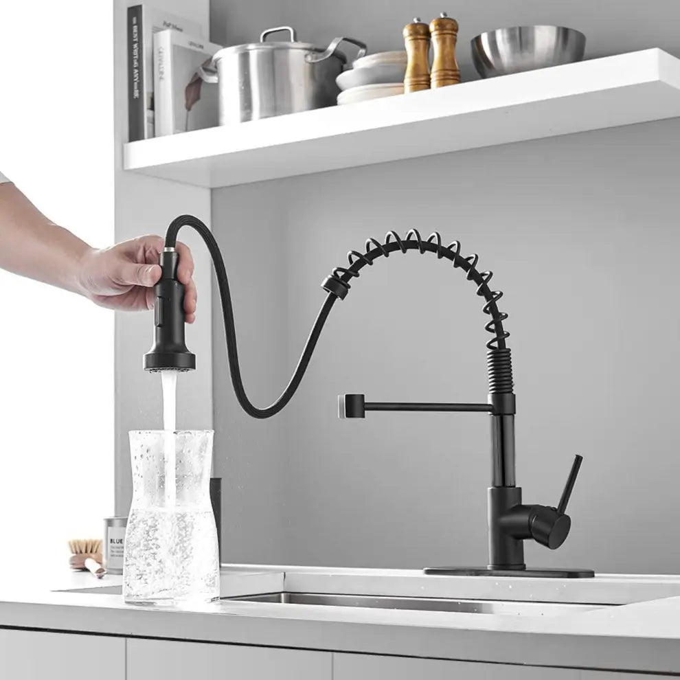 CUPC Certified Brass Pull-Down Kitchen Faucet - Matte Black